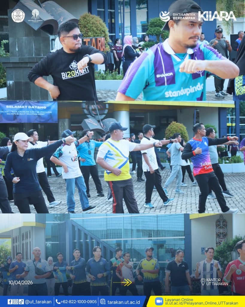 Tarakan – Universitas Terbuka (UT) Tarakan menyelenggarakan kegiatan Olah Raga Gabungan Instansi (OGASI) yang berlangsung di halaman parkir UT Tarakan pada Jumat pagi, 10 April 2026. Kegiatan ini diikuti oleh seluruh staf UT Tarakan dengan penuh semangat dan antusiasme.