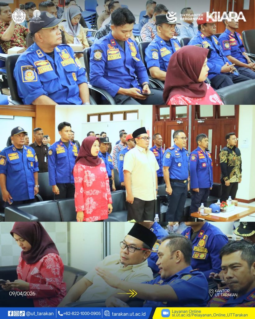 Kegiatan diawali dengan pembukaan, kemudian dilanjutkan dengan sambutan Direktur UT Tarakan, Jeji Muhamad Najib, S.Kom. Dalam sambutannya, beliau menyampaikan pentingnya kesiapan seluruh pegawai dalam menghadapi potensi risiko yang dapat terjadi kapan saja.
