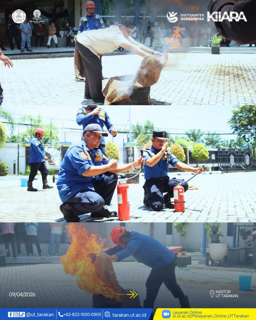 Tarakan – Universitas Terbuka (UT) Tarakan melaksanakan kegiatan Pelatihan Penanggulangan Kebakaran, Evakuasi Bencana, dan Penanganan Hewan Berbahaya pada hari Kamis, 09 April 2026. Kegiatan ini diselenggarakan di Aula Kantor UT Tarakan dan dilanjutkan dengan praktik di halaman Kantor UT, dimulai pukul 09.00 WITA hingga selesai.